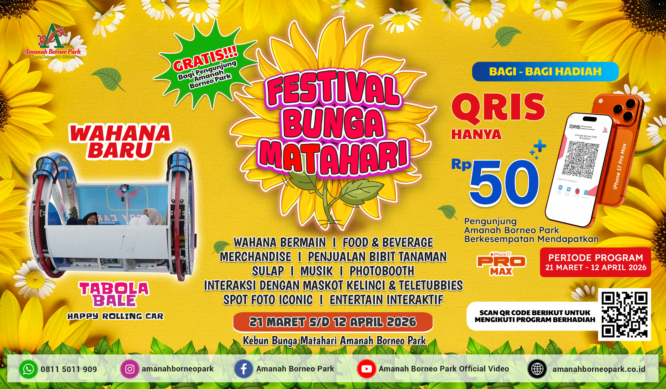 Pengunjung yang ingin mendapatkan informasi lebih lanjut mengenai tiket maupun promo terbaru dapat memantau kanal resmi Amanah Borneo Park melalui Instagram @amanahborneopark, TikTok @amanahborneoparkofficial, atau menghubungi WhatsApp resmi di 0811-5011-909.