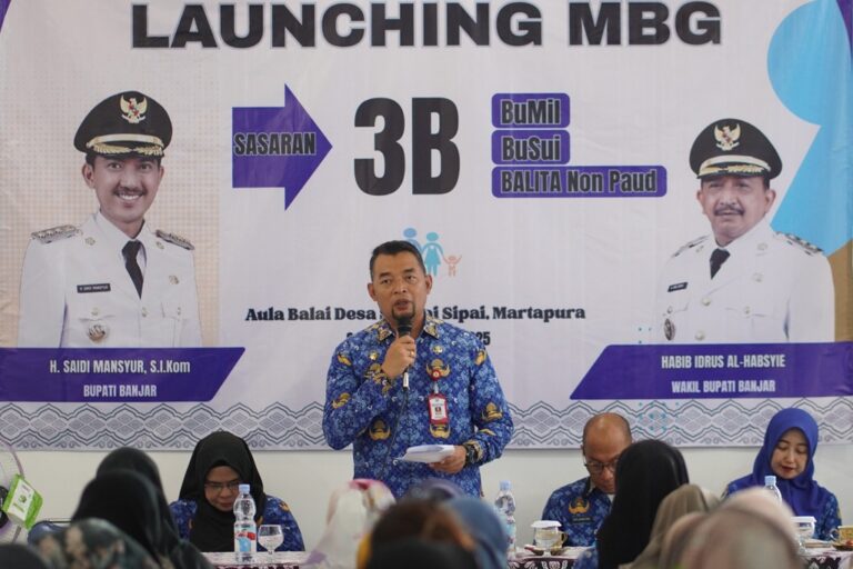 PUBLIKAINDONESIA,MARTAPURA – Dinas Sosial, Pemberdayaan Perempuan, Perlindungan Anak, Pengendalian Penduduk dan Keluarga Berencana (Dinsos P3AP2KB) Kabupaten Banjar resmi meluncurkan Program Makanan Bergizi Gratis (MBG) di Kantor Pambakal Sungai Sipai, Martapura, Senin (1/12/2025) siang.