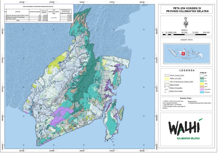 Berdasarkan Catatan Akhir Tahun (CATAHU) WALHI Kalimantan Selatan 2025, kondisi lingkungan di Kalsel telah melewati batas aman. Dari total luas wilayah sekitar 3,7 juta hektar, sebanyak 51,57 persen atau sekitar 1,9 juta hektar telah dikuasai dan dibebani izin industri ekstraktif.