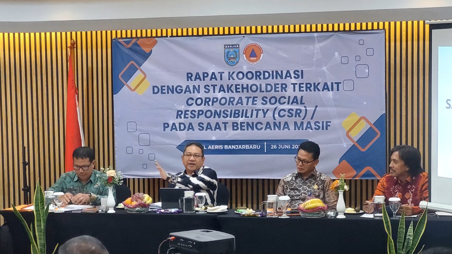 PUBLIKAINDONESIA.COM, BANJARBARU – Badan Penanggulangan Bencana Daerah (BPBD) Kabupaten Banjar menggelar rapat koordinasi (rakoor) bersama sejumlah pemangku kepentingan terkait pemanfaatan program Corporate Social Responsibility (CSR) dalam upaya penanggulangan bencana. Kegiatan berlangsung pada Kamis (26/6/2025) di Ruang Meeting Calytacalypso, Lantai R Hotel Aeeris, Banjarbaru.