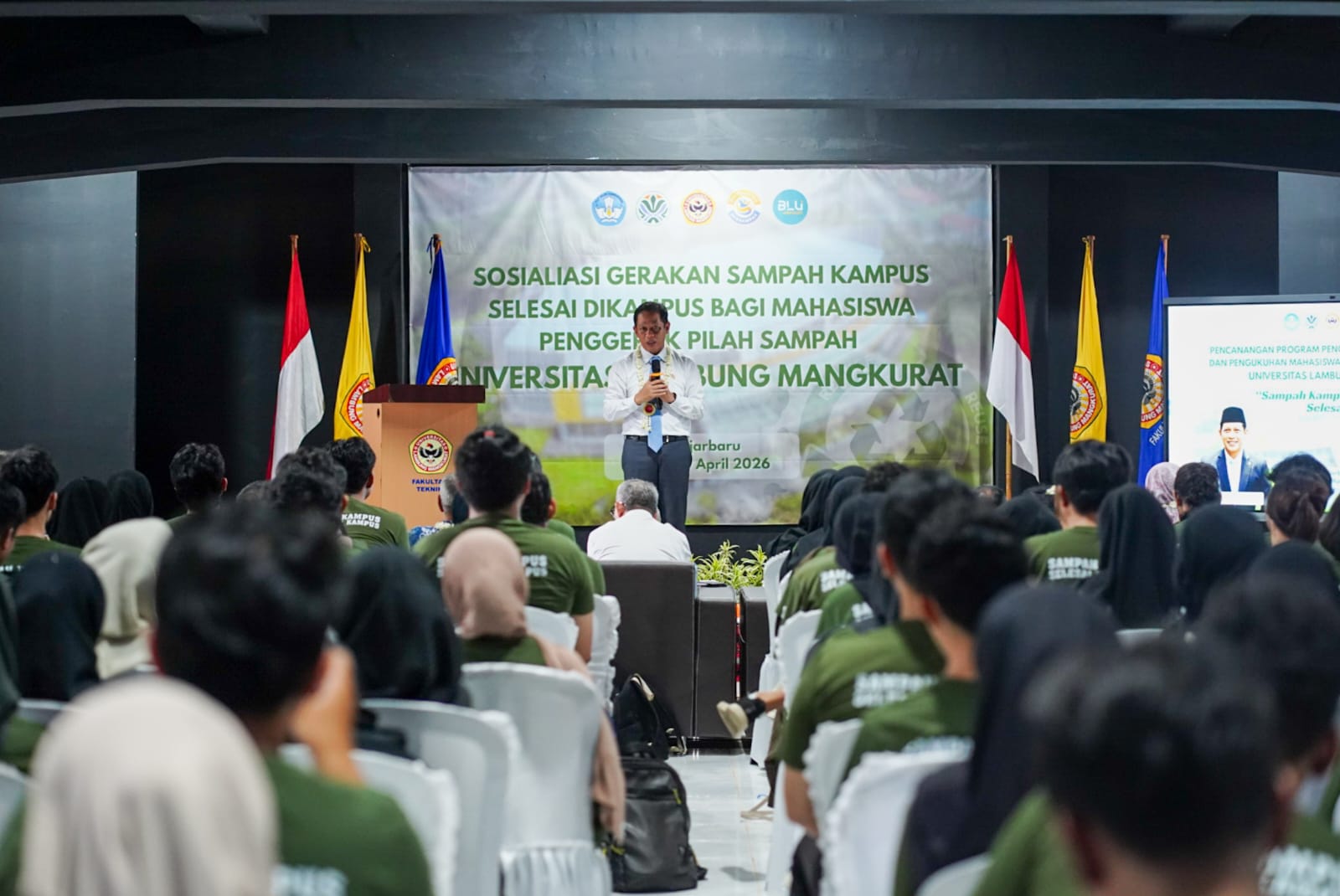Momentum ini berlangsung dalam rangkaian Wisuda ke-129 ULM, yang sekaligus menjadi ajang peluncuran program “Sampah Kampus, Selesai di Kampus” serta pengukuhan 275 Mahasiswa Penggerak Pilah Sampah.
