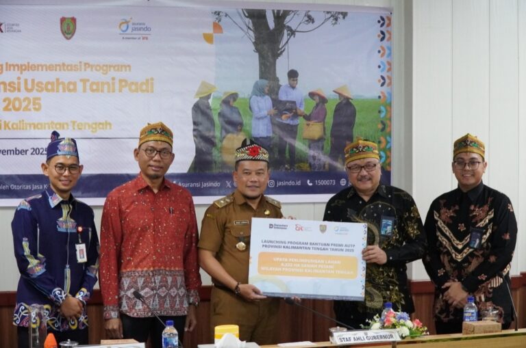 PUBLIKAINDONESIA.COM, PALANGKA RAYA – Upaya memperkuat ketahanan pangan di Kalimantan Tengah (Kalteng) mendapat angin segar. PT Asuransi Jasa Indonesia (Asuransi Jasindo) resmi meluncurkan Program Asuransi Usaha Tani Padi (AUTP), bekerja sama dengan Dinas Pertanian Kalteng dan Otoritas Jasa Keuangan (OJK). Program ini dijalankan untuk memberikan perlindungan kepada petani dari risiko gagal panen mulai dari banjir, kekeringan, hingga serangan hama dan penyakit.