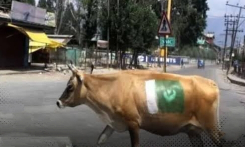 Dalam sebuah insiden unik, pemuda tersebut melukis seekor sapi dengan warna bendera Pakistan dan membiarkannya berkeliaran di jalan-jalan Srinagar.