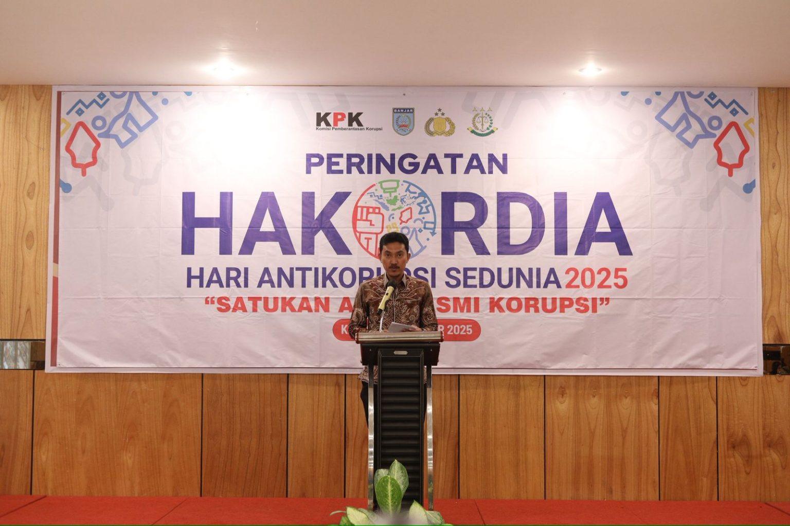 PUBLIKAINDONESIA,BANJARBARU – Pemerintah Kabupaten Banjar menegaskan komitmennya dalam mewujudkan pemerintahan yang bersih, berwibawa, dan dipercaya masyarakat. Komitmen tersebut ditegaskan Bupati Banjar H Saidi Mansyur saat menghadiri peringatan Hari Anti Korupsi Sedunia (Hakordia) Tahun 2025 di Hotel Fave Banjarbaru, Kamis (11/12/2025) pagi.