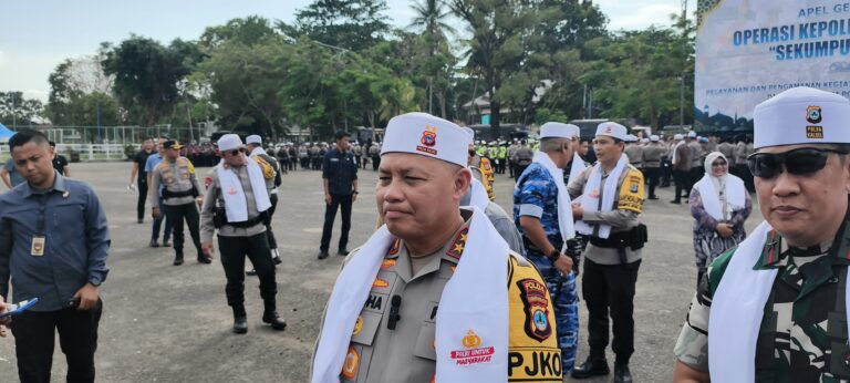 PUBLIKAINDONESIA, BANJARBARU– Menjelang pelaksanaan pengajian rutin 5 Rajab 1447 Hijriah, Kepolisian Daerah Kalimantan Selatan (Polda Kalsel) menggelar Apel Gelar Pasukan dan Tactical Floor Game (TFG) Operasi Sekumpul Intan 2025 di Lapangan Murjani Banjarbaru, Kamis (25/12/2025) sore.