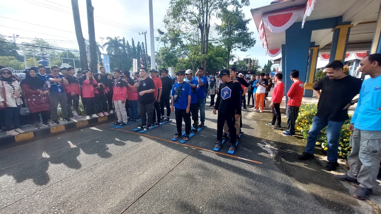 Perlombaan yang menampilkan terompah panjang, lari karung, dan engrang ini diikuti oleh perwakilan SKPD dan BUMD. Suasana kian semarak dengan dukungan penonton yang memenuhi area kegiatan.