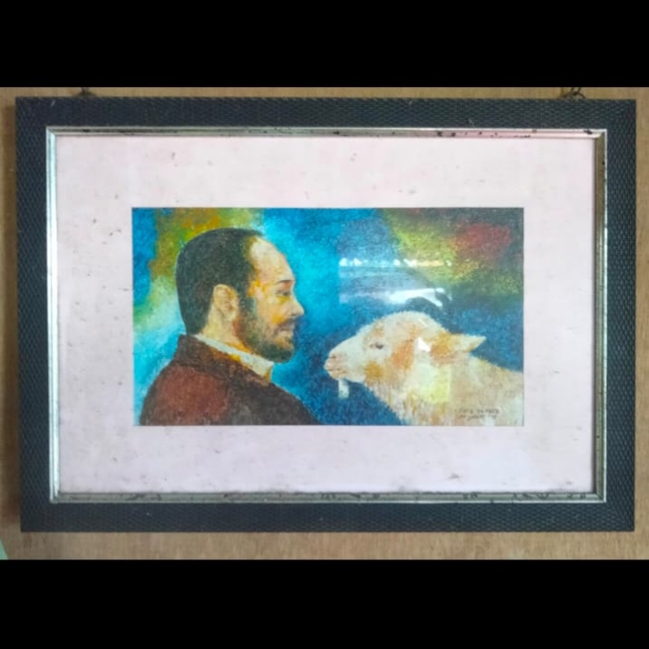 Sambil mengobrol, pandangan saya tertuju pada lukisan (yang katanya dia lukis sendiri, dengan nama ‘Face to Face’).