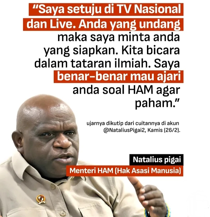 Sebelum wacana debat terbuka mencuat, Pigai sempat mengunggah cuitan panjang yang menegaskan bahwa pemahamannya tentang HAM tidak hanya bersumber dari teori, tetapi juga pengalaman hidup.