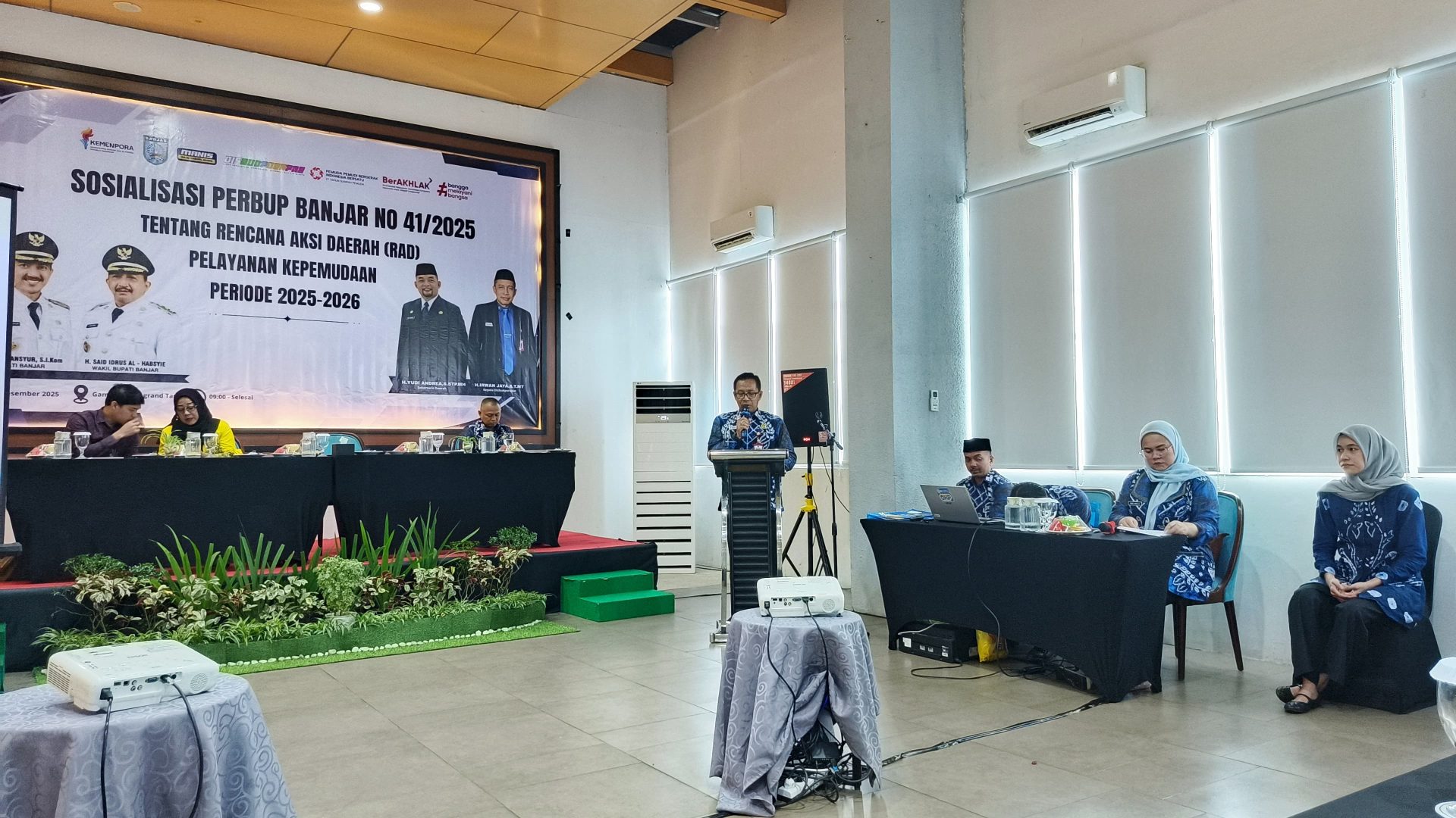Rakor dipimpin Sekretaris Daerah Kabupaten Banjar, H. Yudi Andrea, didampingi Plt Asisten Pemerintahan dan Kesra, Khairullah Ansharie, serta Staf Ahli Bidang Pemerintahan dan Hukum, Dian Marliana.