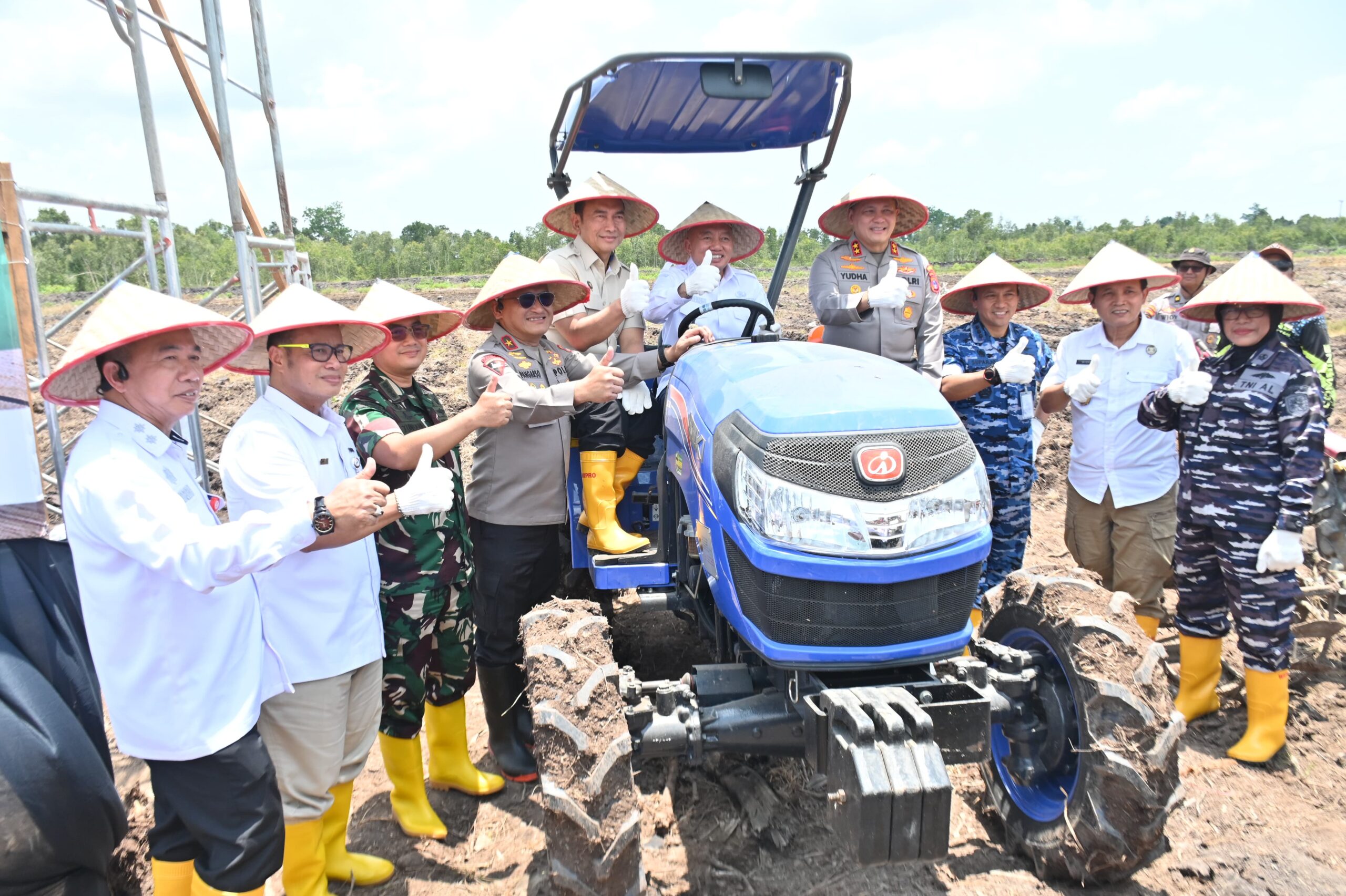 “Saat ini kami menanam jagung di lahan rawa bergambut seluas 16 hektare dari total 200 hektare. Kegiatan ini adalah bentuk pemangkatan lahan tidak produktif yang sebelumnya sering mengalami kebakaran saat musim kemarau,” ujar Kapolda.