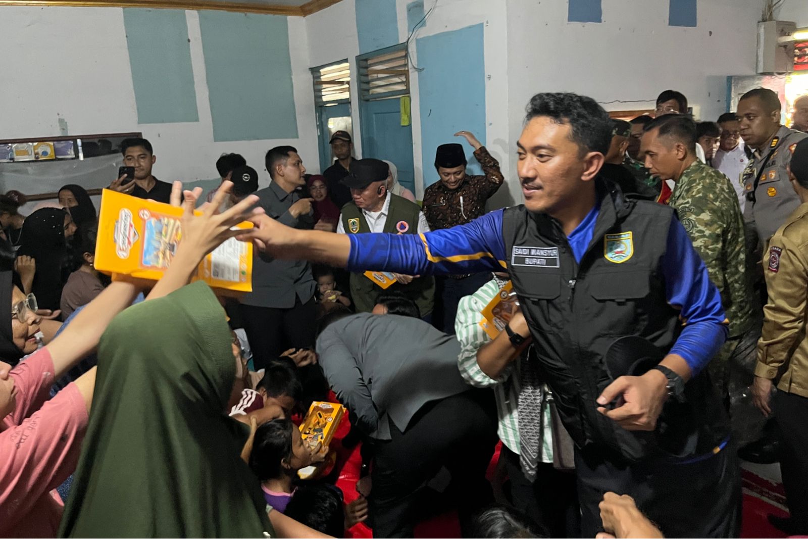 “Distribusi makanan dilakukan dua kali sehari, siang dan malam, baik dengan sistem antar maupun dibagikan langsung kepada warga terdampak,” jelas Muhidin.